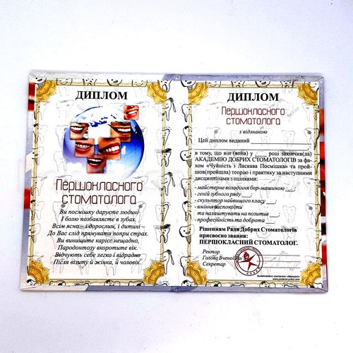 Диплом ламінований першокласного Стоматолога